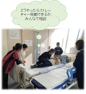 ・自身に腰痛があることや、患者の身体の動きやスペースを 十分に尊重した介助になっていないと感じることが多かった。自分の身体の使い方を理解し、患者体験を通して動きの負担や安楽性を実感することで、他者の動きを観察した際に「自分と患者のどの動きが負担を減らせるか」を具体的に考えられるようになった。